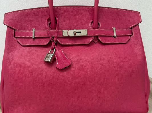 Authentic Hermes Birkin 35 Rose Tyrien Epsom with Palladium Hardware