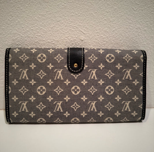 Authentic Louis Vuitton Blue Distressed Look Denim Monogram Leather Long Wallet