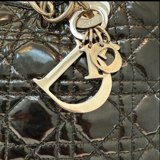 Authentic Christian Dior Patent Lady Dior Soft Black Cannage Shopping Tote Bag