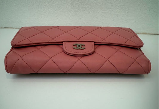 Authentic Chanel CC Quilted Pink BIFOLD Leather Long Flap Wallet