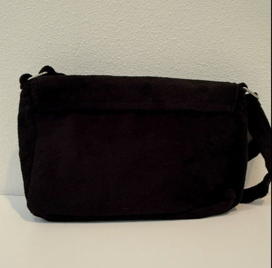 Black Chanel White Coco Mark Pile Crossbody Shoulder Bag Soft Handbag