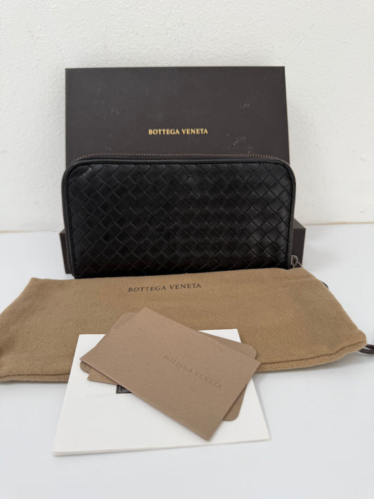 Authentic BOTTEGA VENETA Black Intrecciato Zip Around Long Continental Wallet