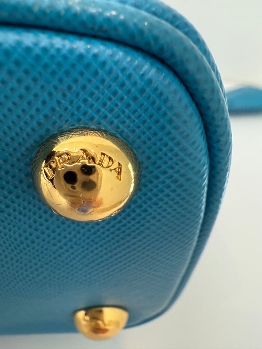 Prada Mini Baby Blue Galleria Saffiano Leather Shoulder Crossbody Satchel Bag
