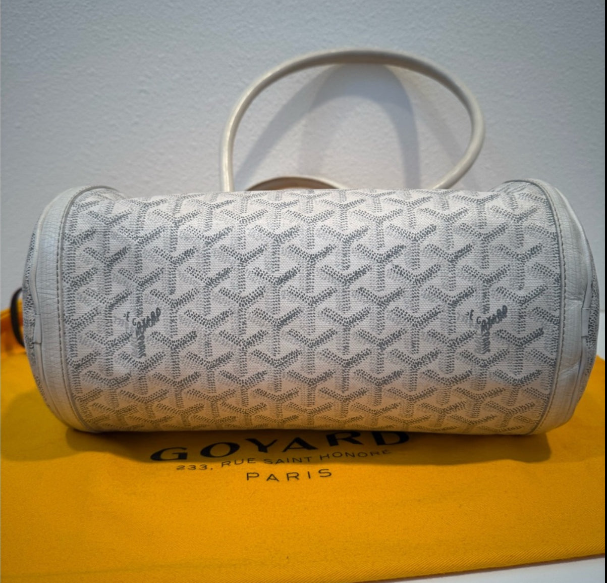 Authentic Authentic Goyard White Leather Goyardine Croisière Boston Duffle Bag