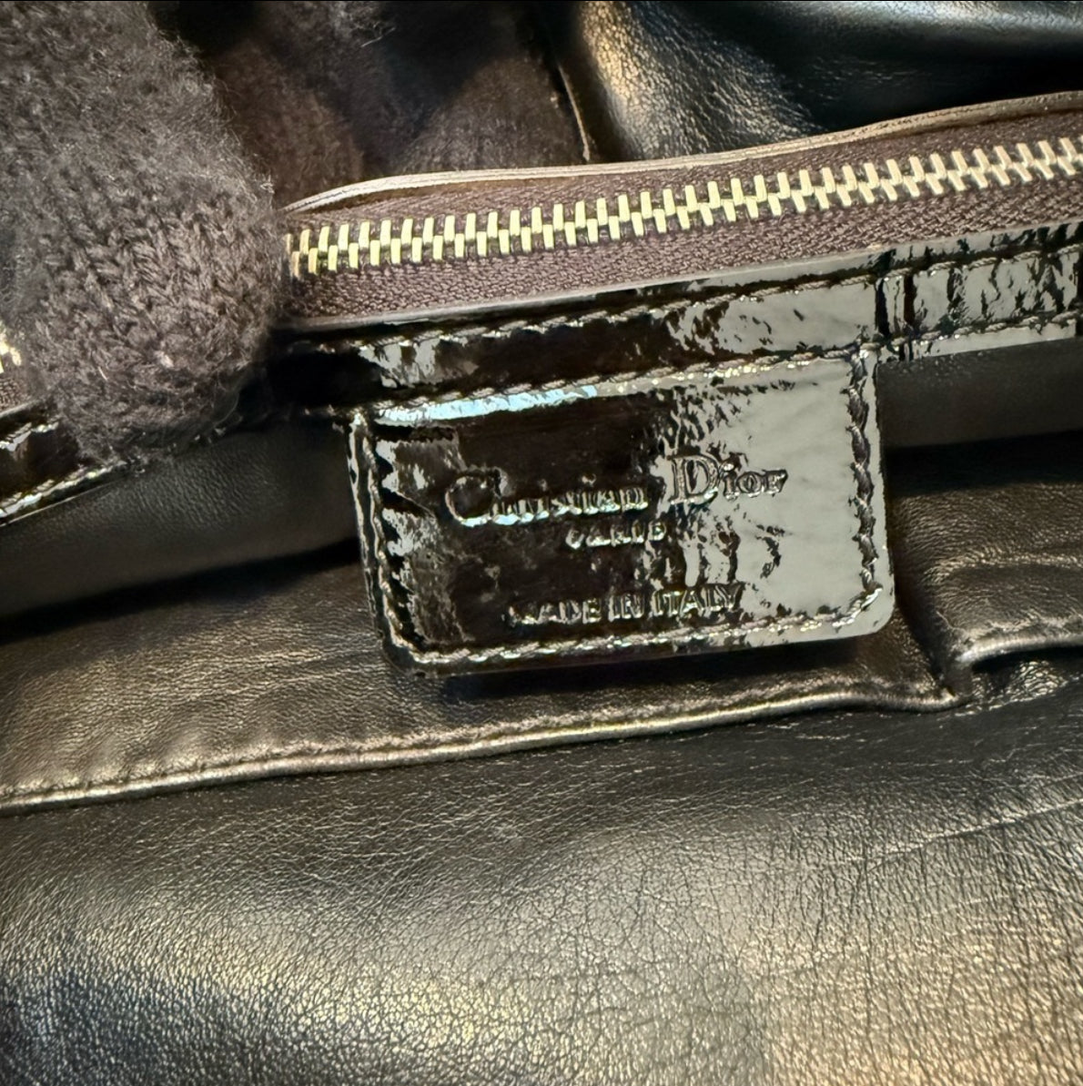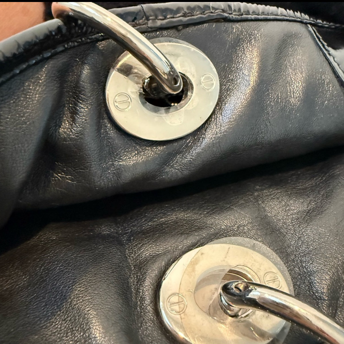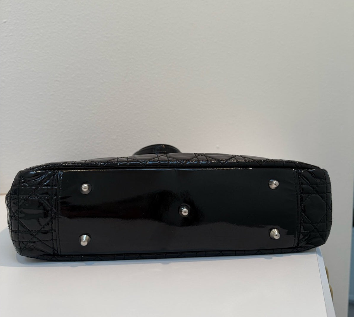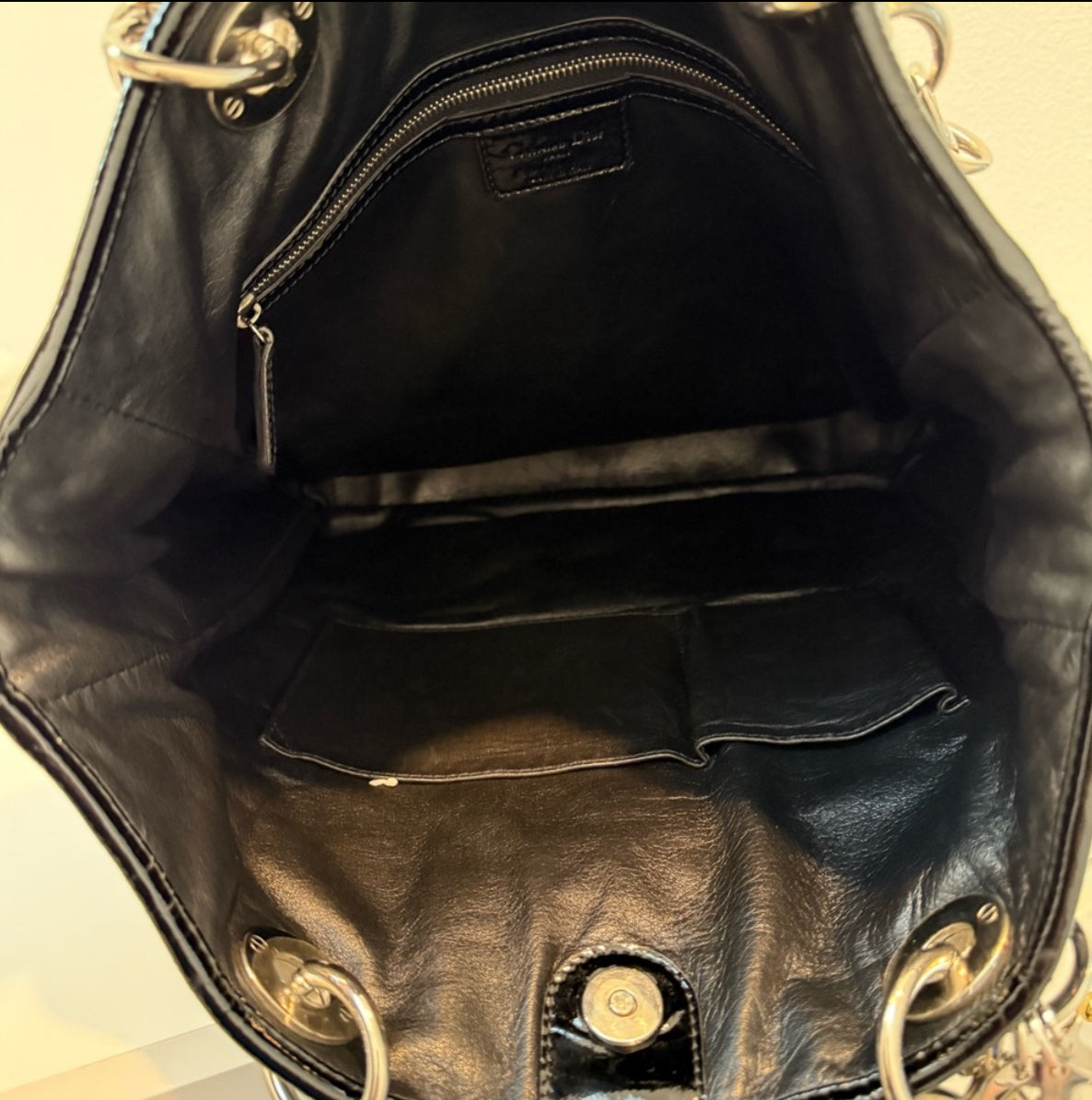 Authentic Christian Dior Patent Lady Dior Soft Black Cannage Shopping Tote Bag