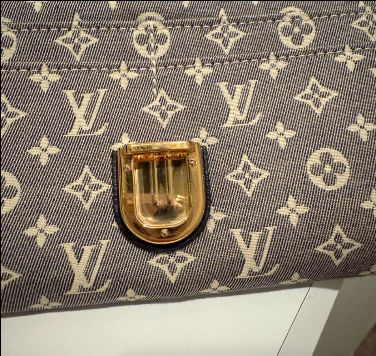 Authentic Louis Vuitton Blue Distressed Look Denim Monogram Leather Long Wallet