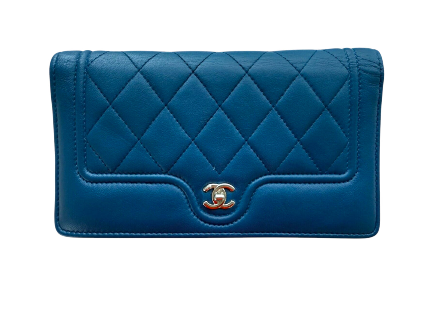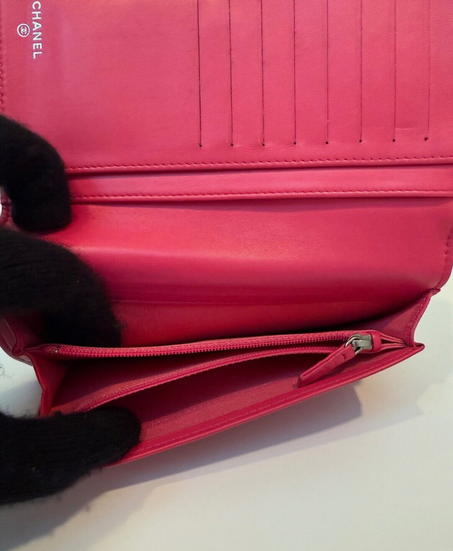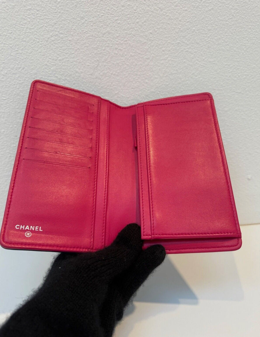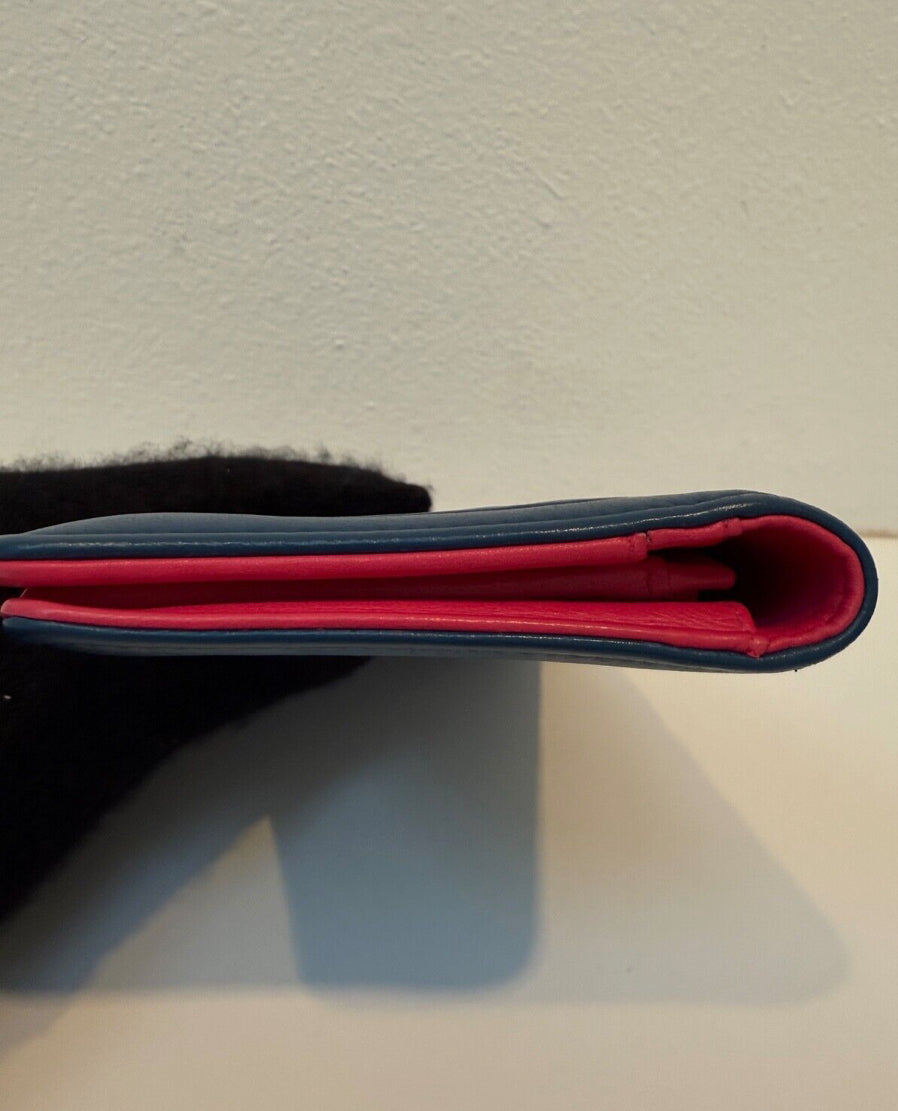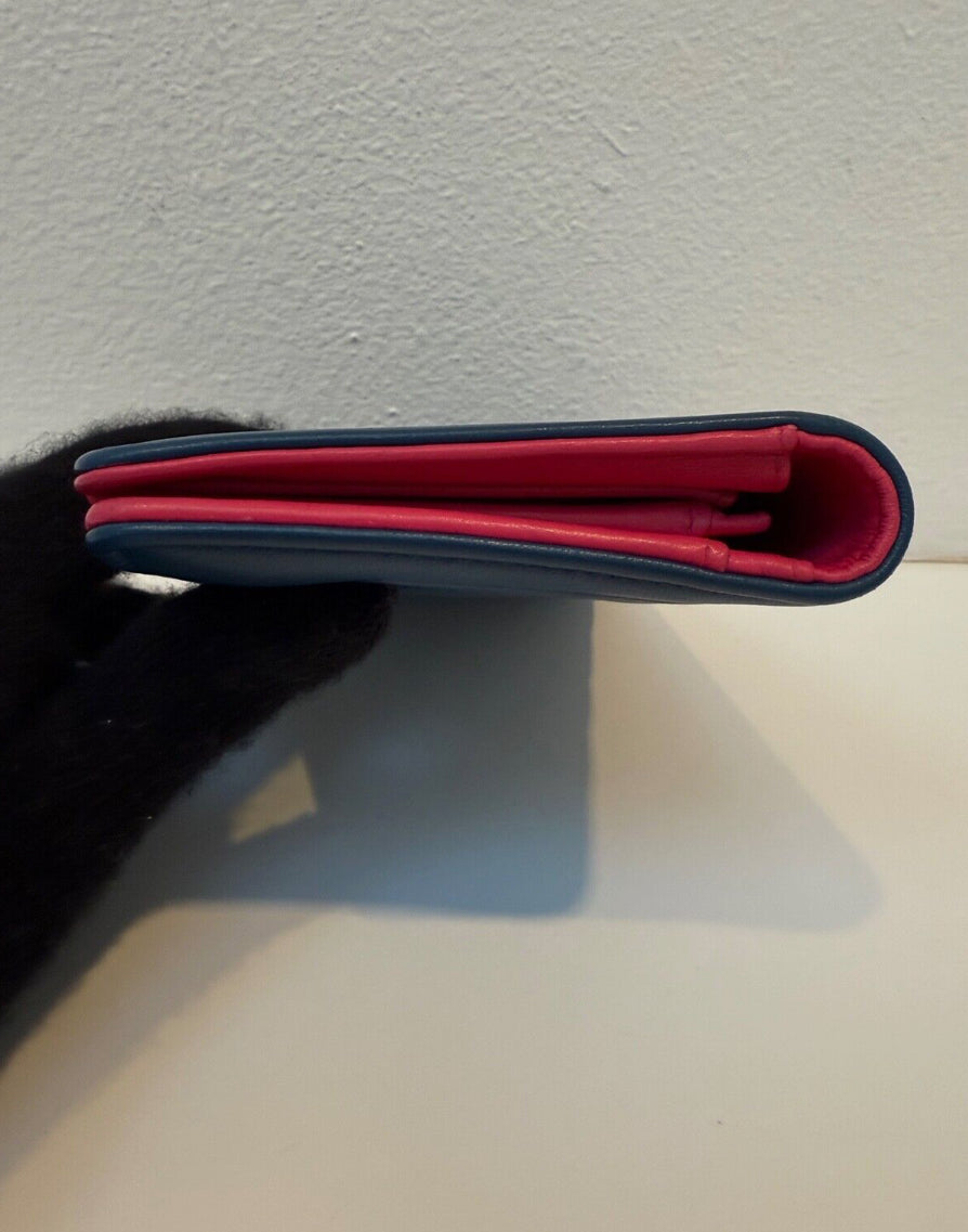 Chanel Blue Quilted Wallet Pink Interior Leather Long Flap Wallet