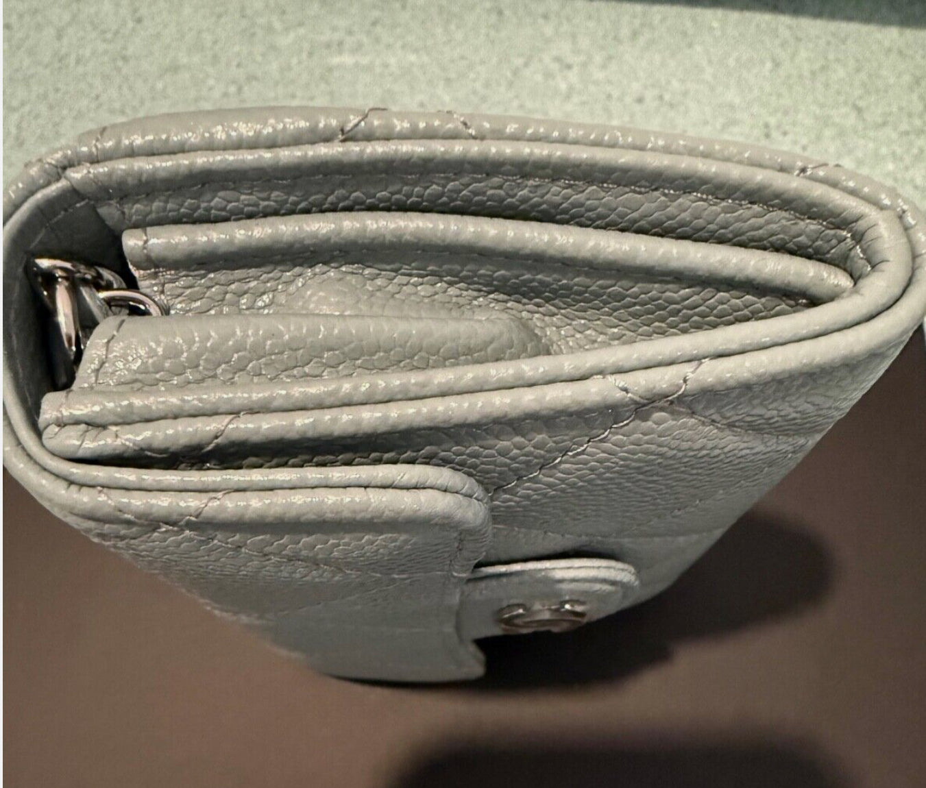Chanel Classic Flap Quilted Caviar Mini Card Holder on Chain Green