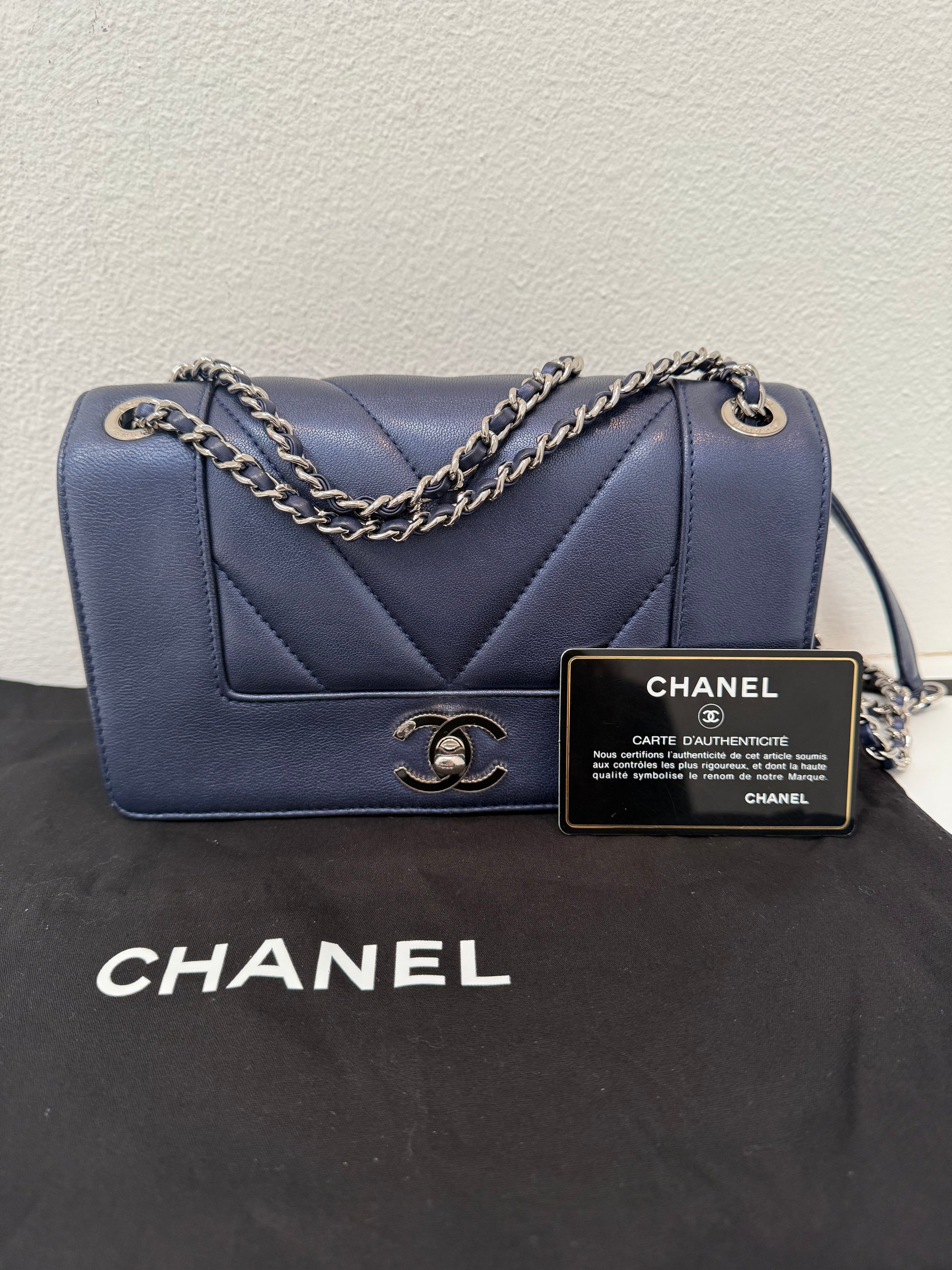 CHANEL Quilted Small Dark Navy Mademoiselle Double Flap Bag