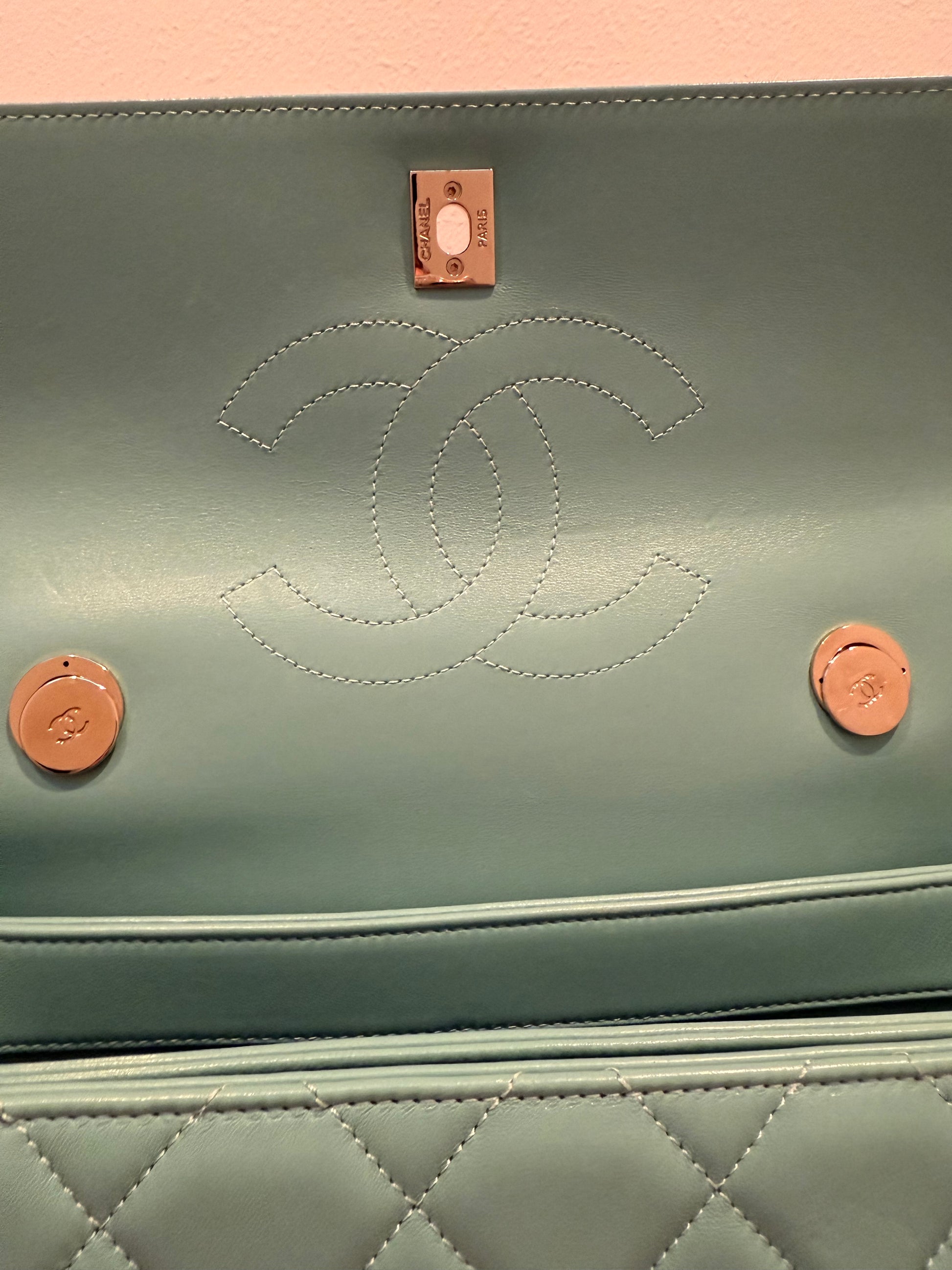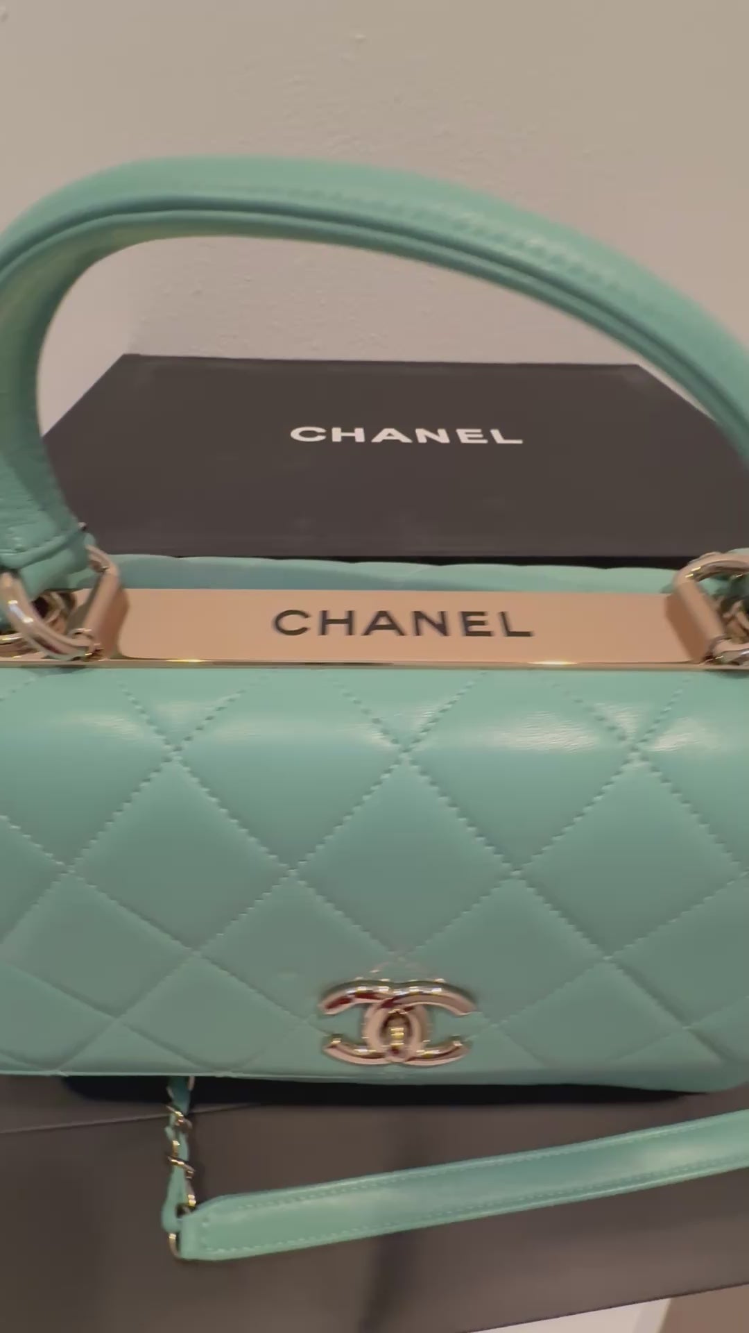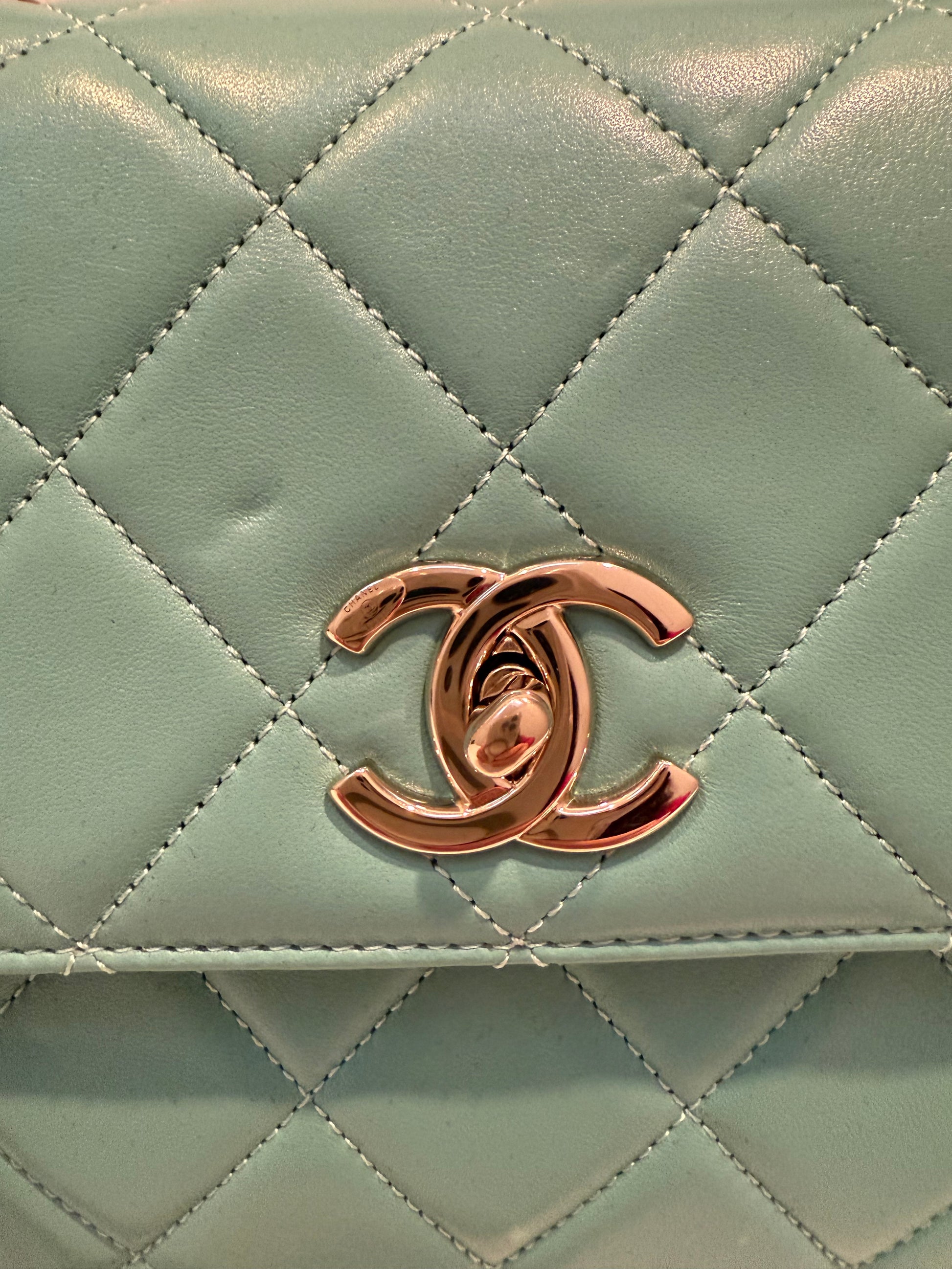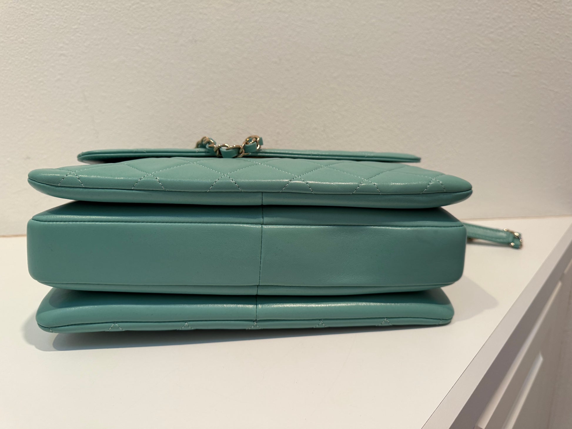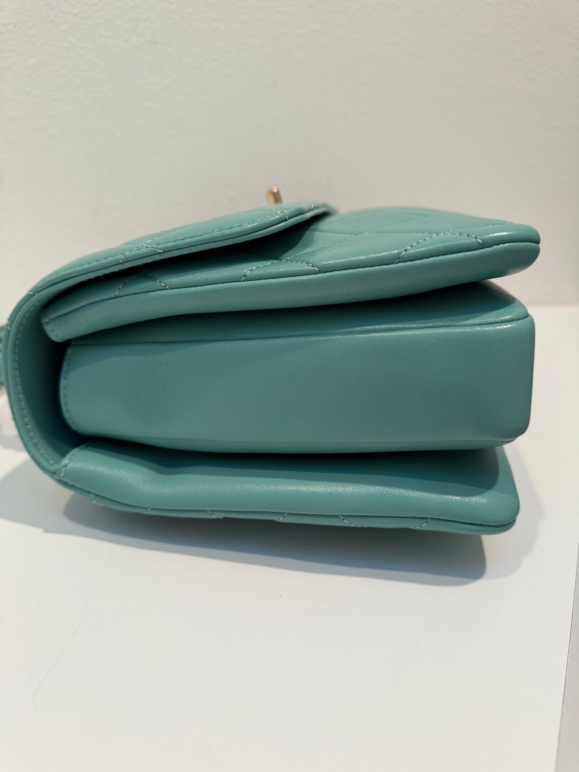 CHANEL Turquoise Lambskin Quilted Small Trendy CC Dual Handle Flap Bag
