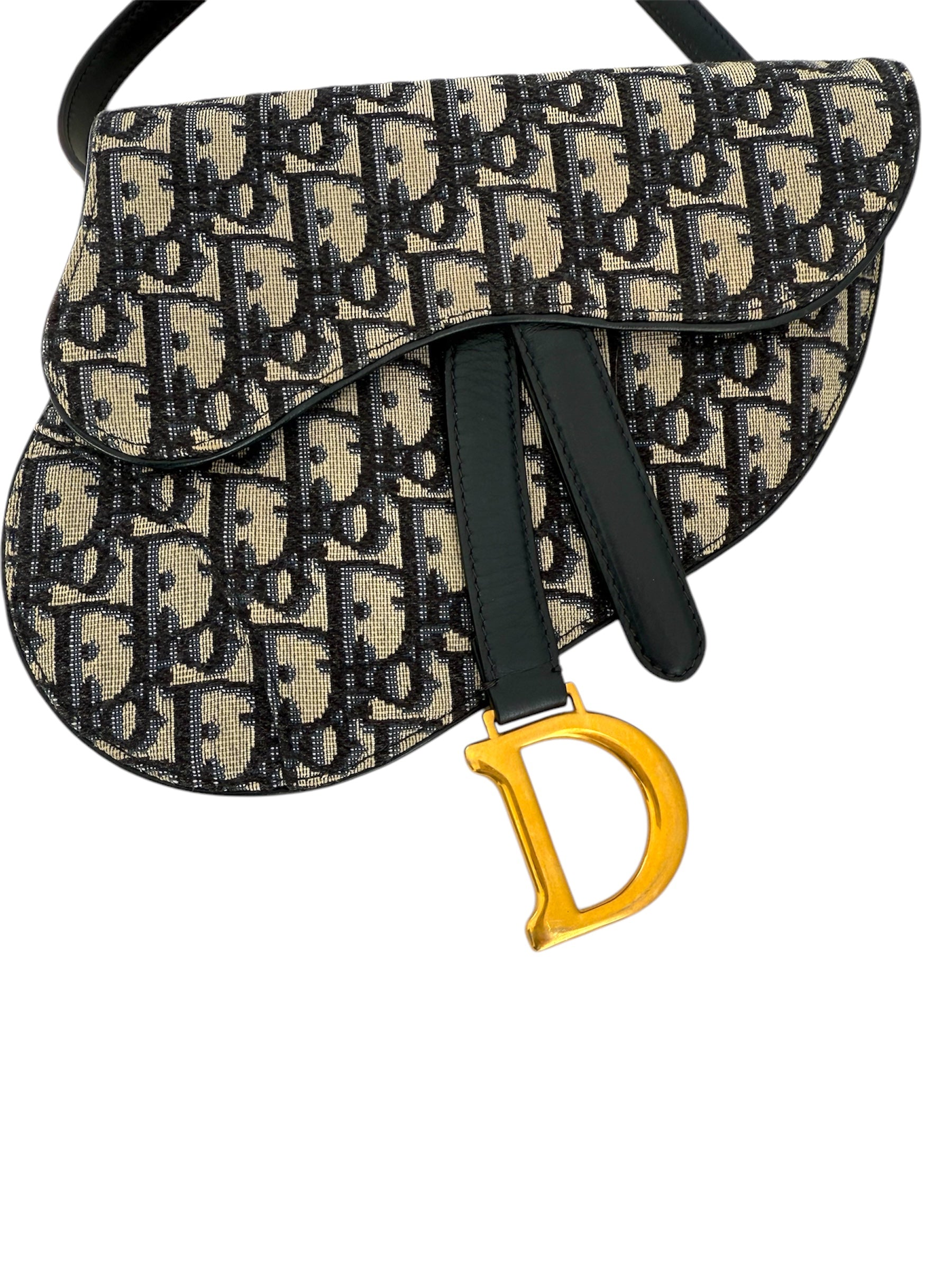 CHRISTIAN DIOR Oblique Blue Monogram Saddle Shoulder Crossbody Bag