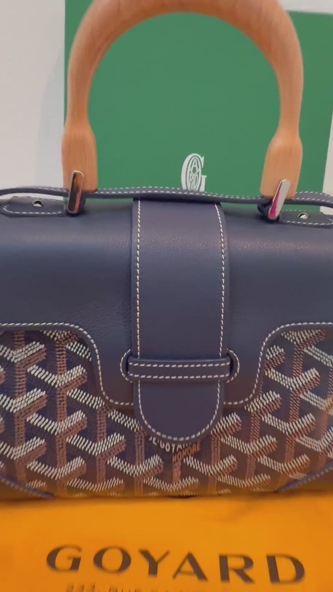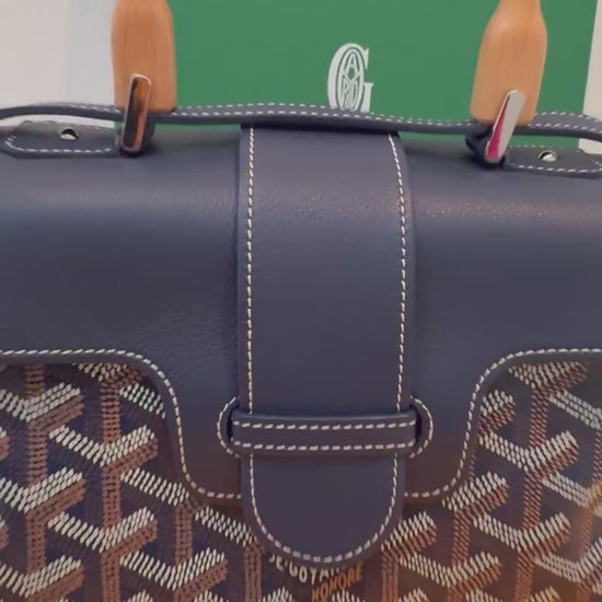 Goyard Saigon Souple Mini Bag Navy Blue Goyardine Palladium Top Handle Bag