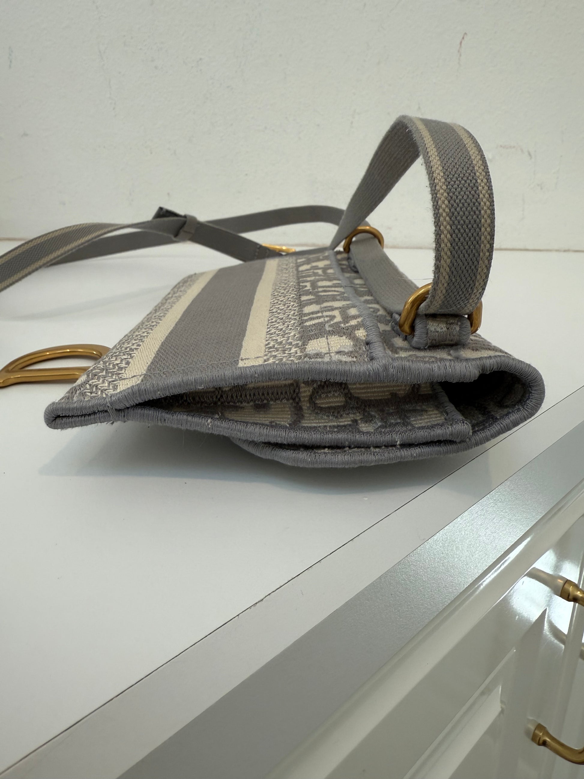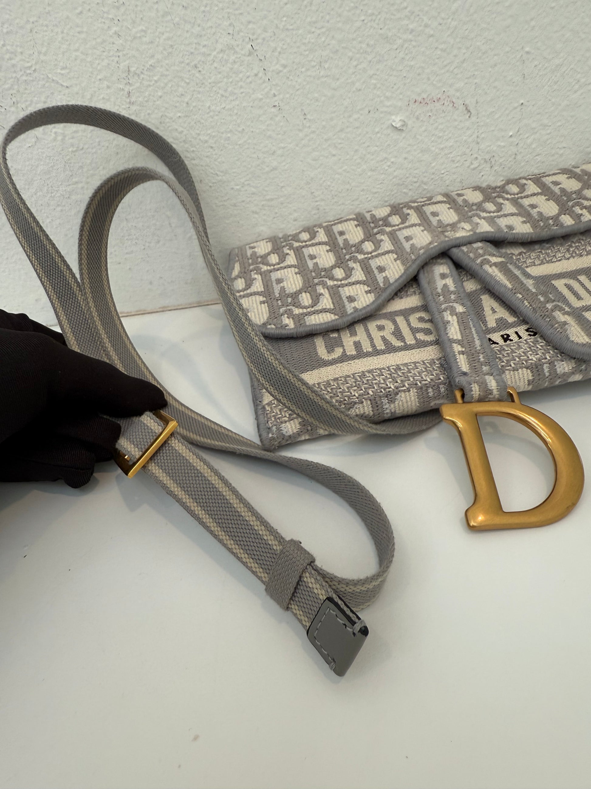 Grey CHRISTIAN DIOR Oblique Slim Saddle Pouch Belt Shoulder Crossbody Bag