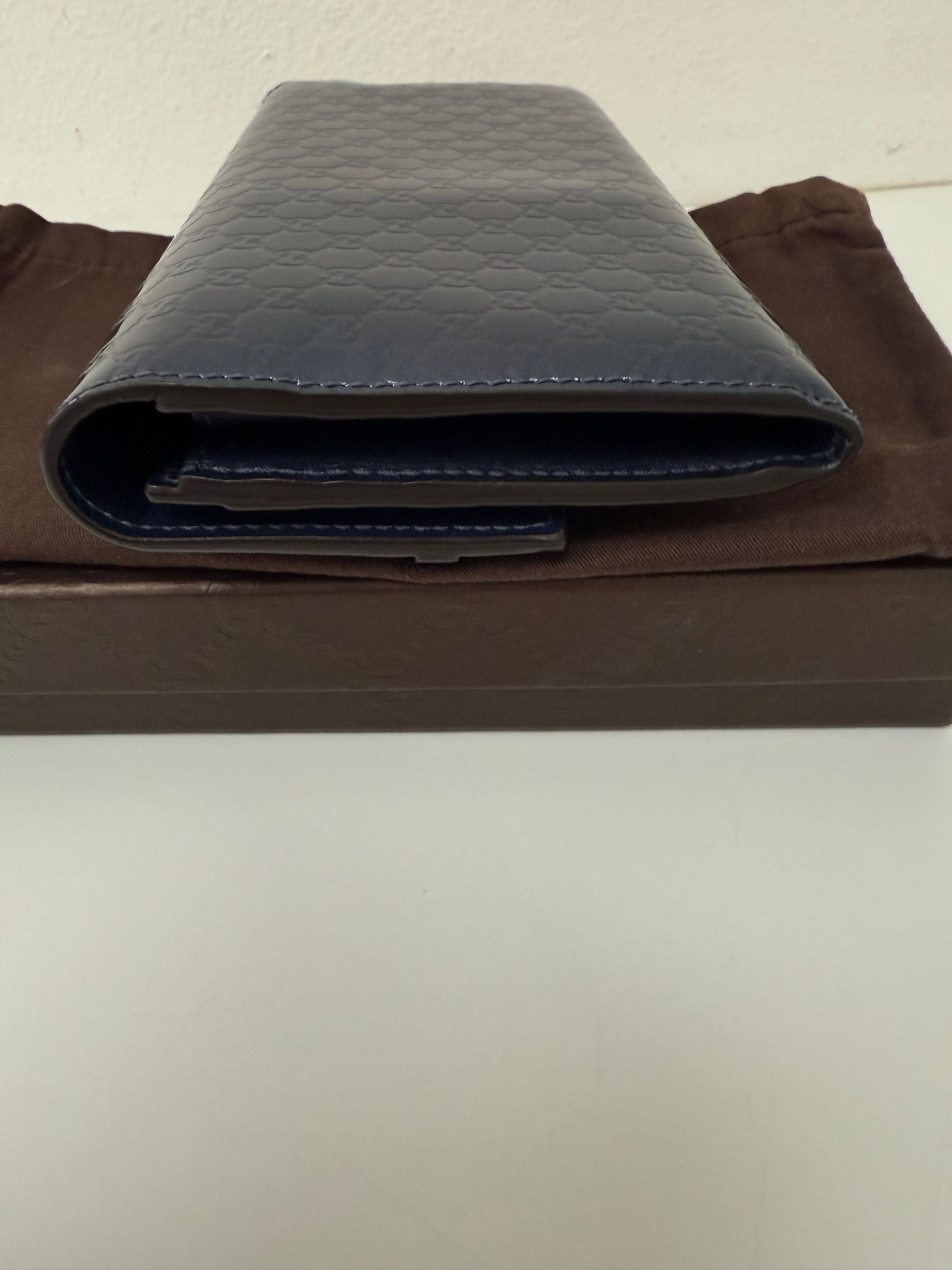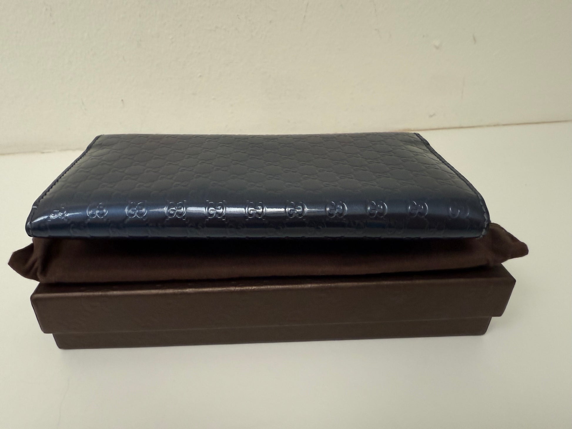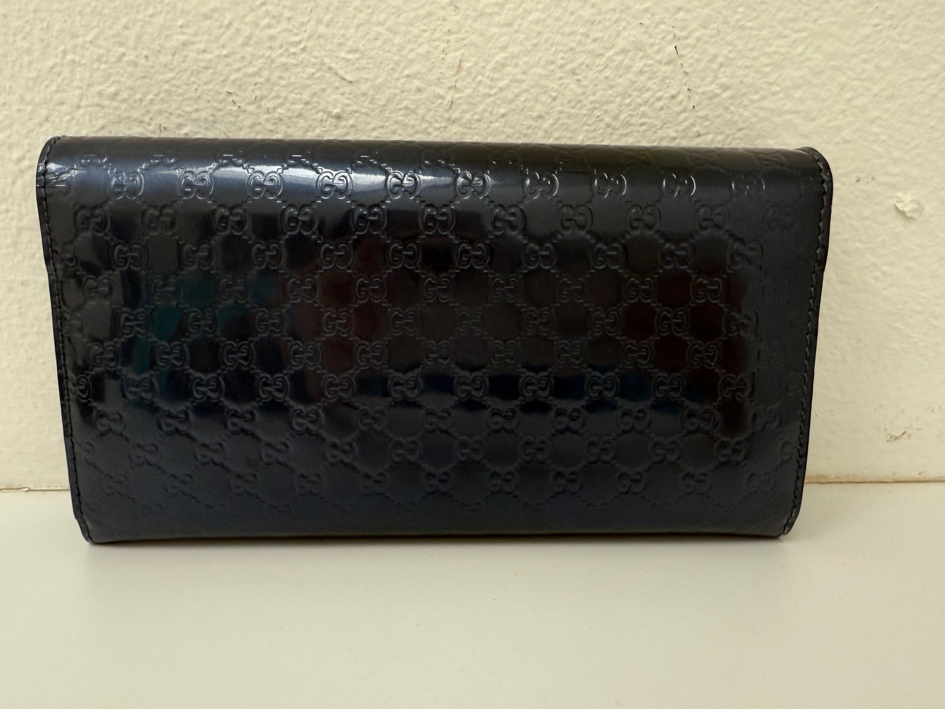 Gucci Navy Guccissima Patent Leather Long Continental Wallet