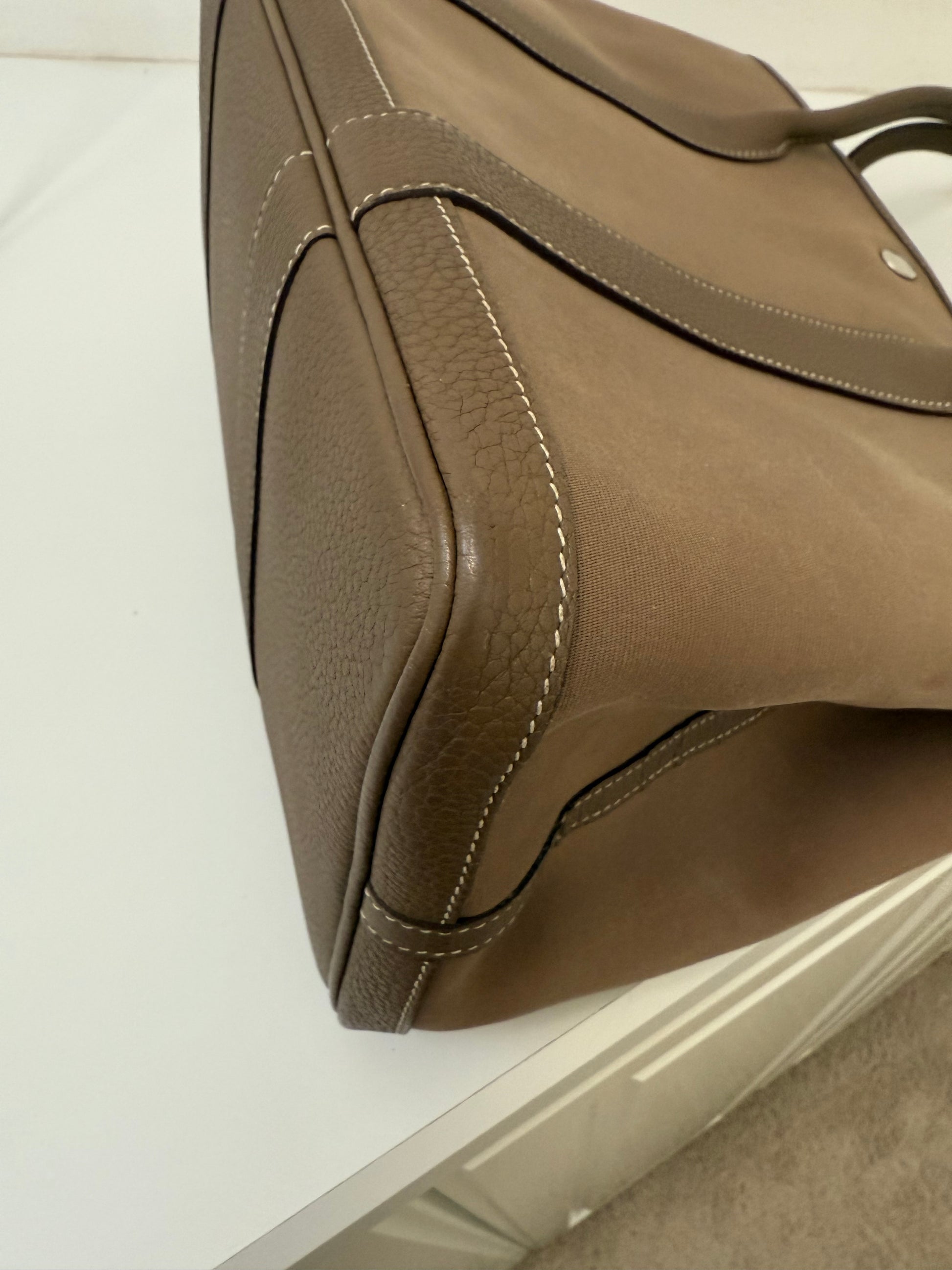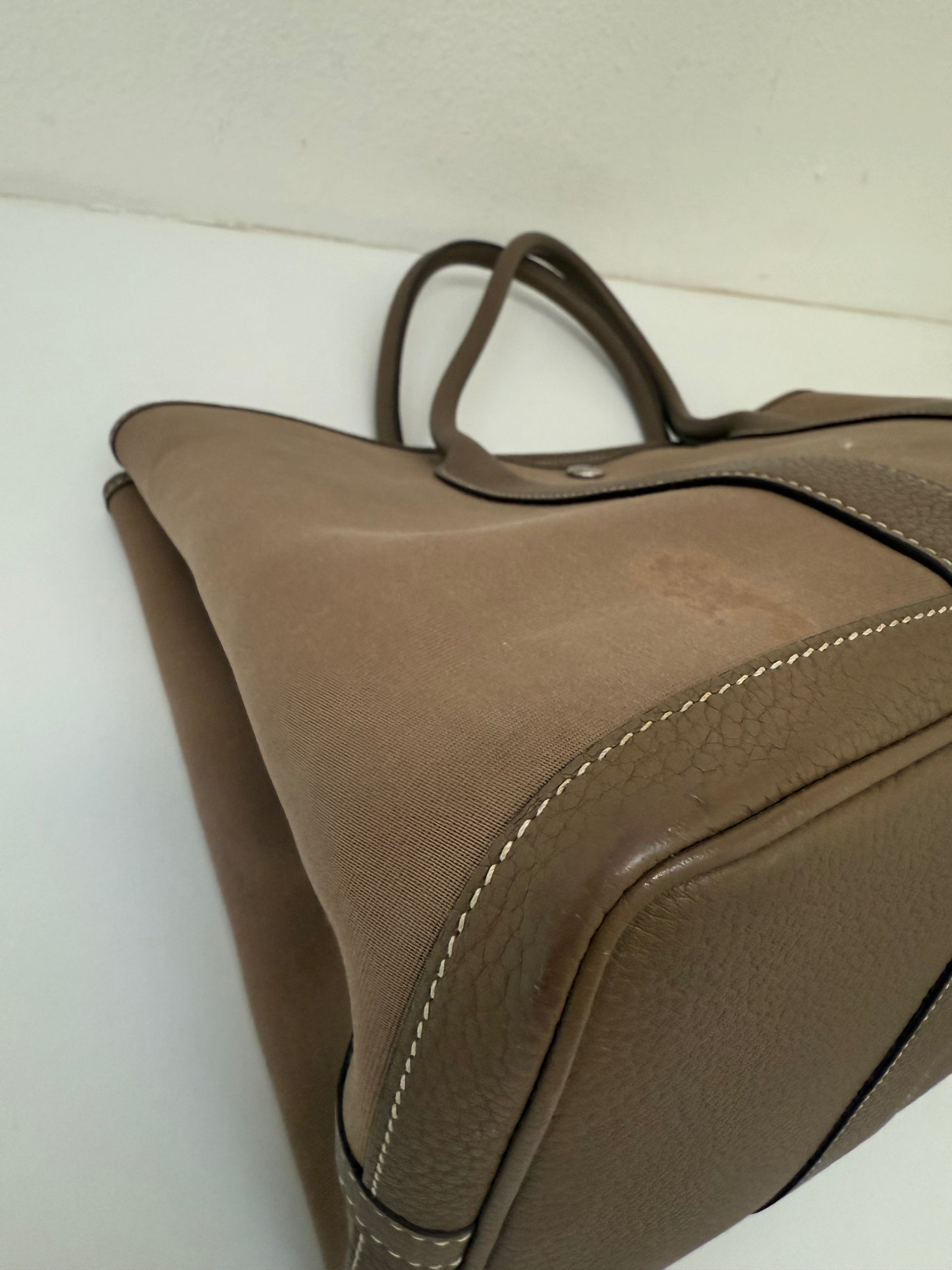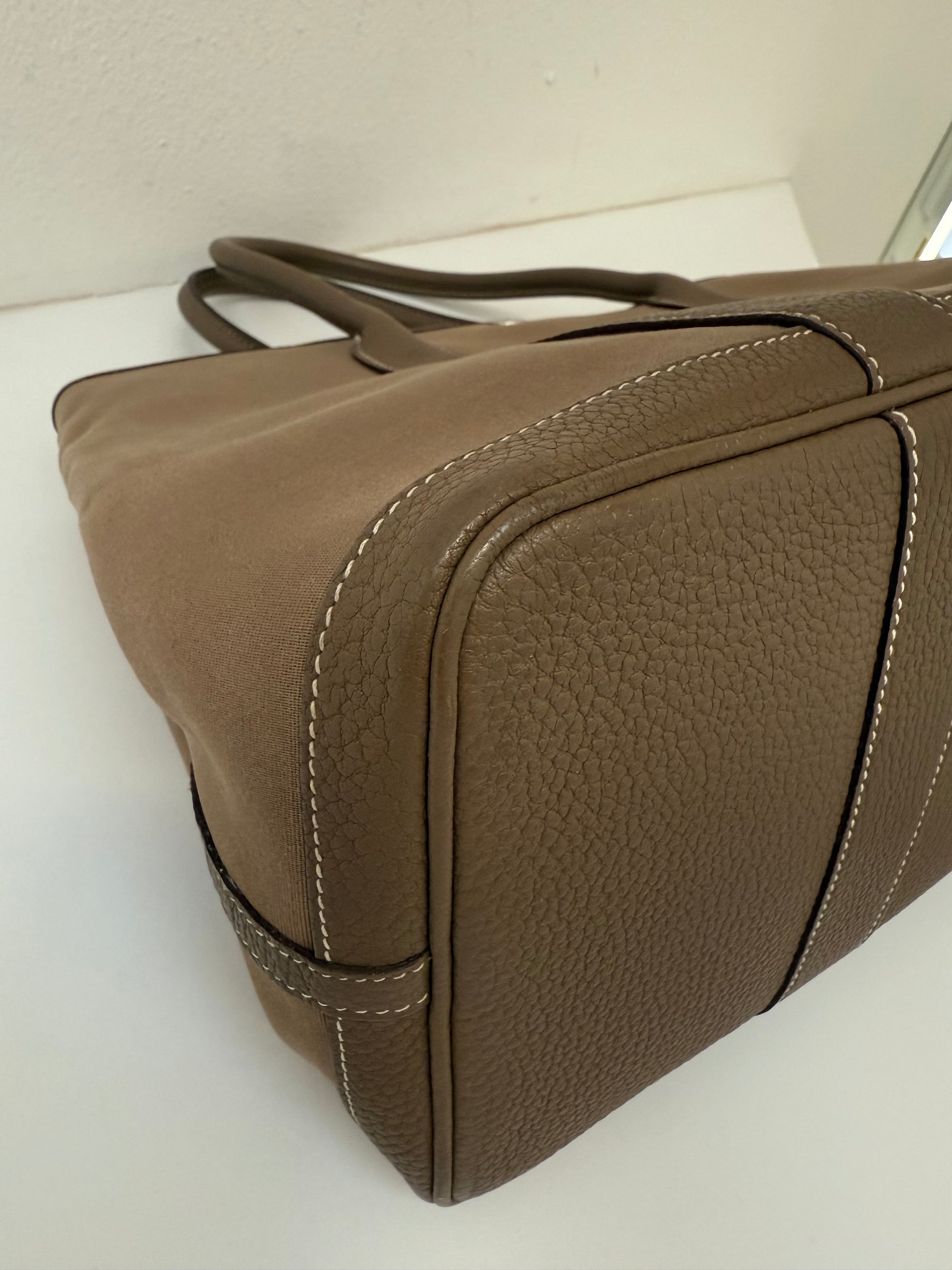 Hermes Garden Party 36 PM Toile Etoupe Leather Palladium Tote Bag