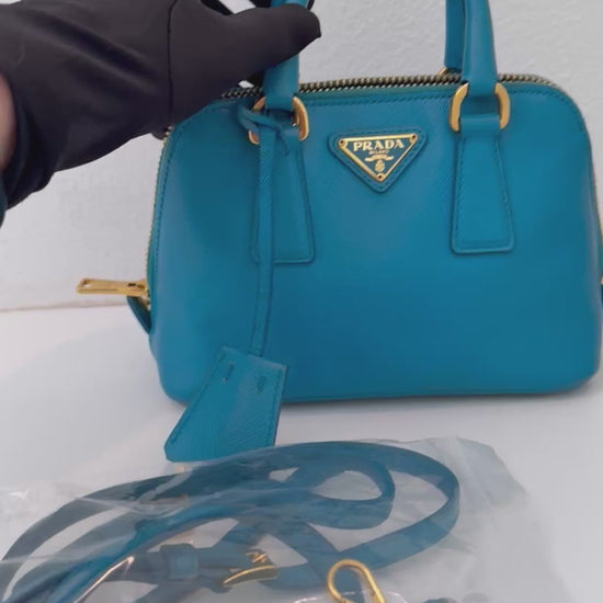 Prada Mini Baby Blue Galleria Saffiano Leather Shoulder Crossbody Satchel Bag