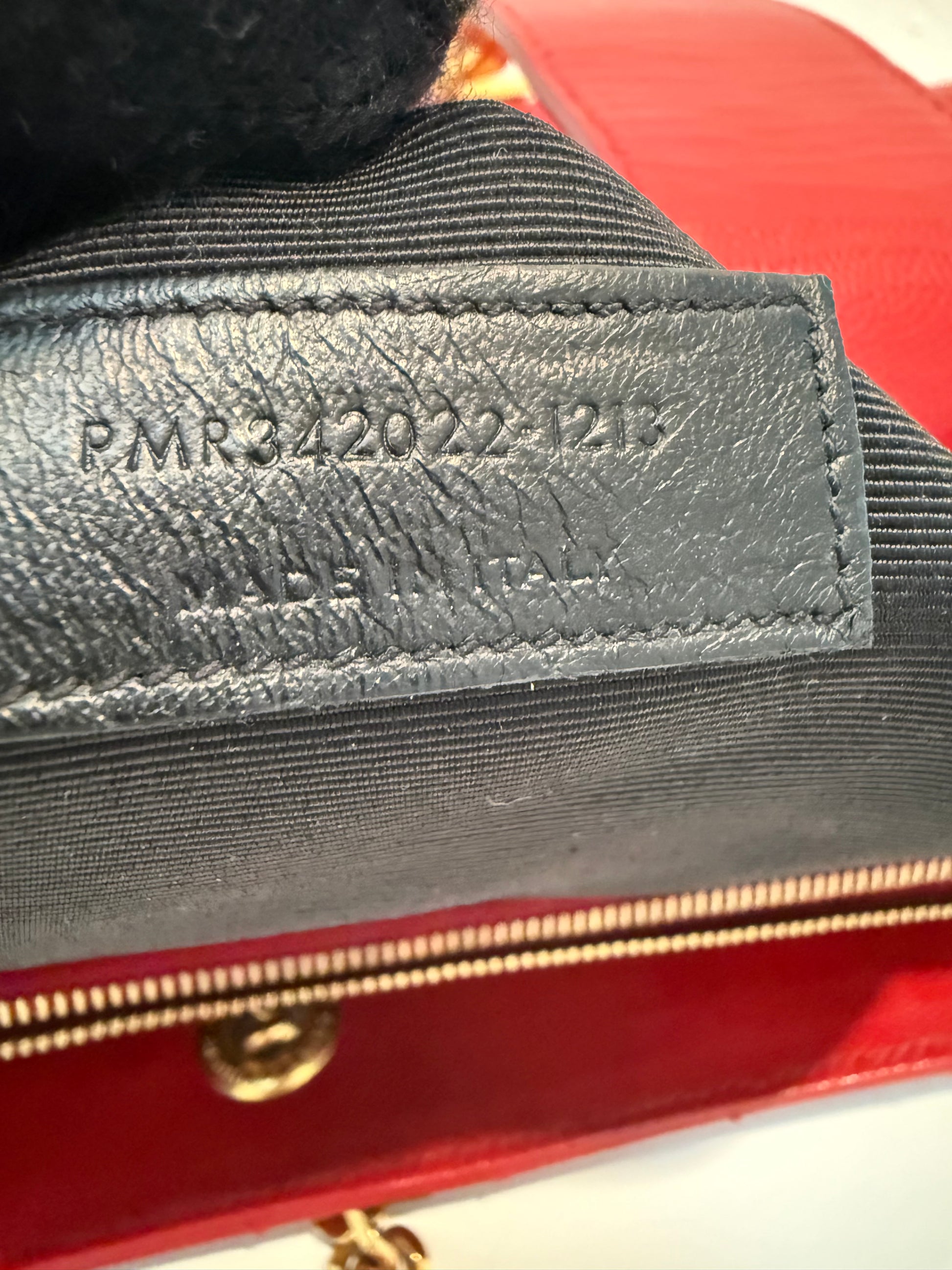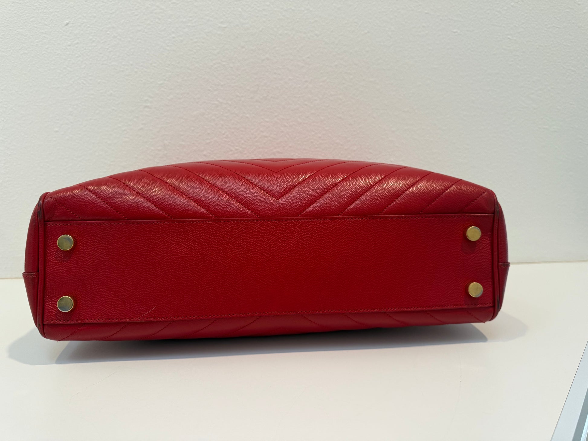 YVES SAINT LAURENT Red Quilted Grained Leather Monogram Chain Cassandra Tote Bag